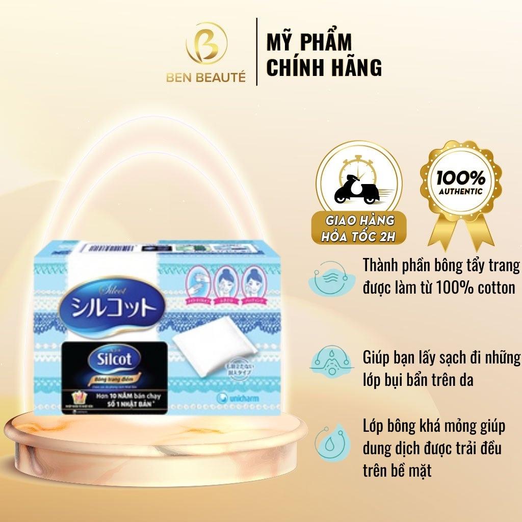 Ben Beauté - Chuyên Sỉ Lẻ Mỹ Phẩm Authentic. Khách mua Sỉ vui lòng liên hệ 0903.130.117 để được tư vấn cách thức và báo giá sỉ cho bạn. Bông tẩy trang Silcot 82 cái giúp bạn lấy sạch đi những lớp bụi bẩn trên da cũng như lớp trang điểm một cách nhẹ nhàng kể cả những vùng da nhạy cảm.