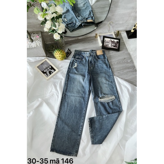 Giới thiệu TCshopjean Bigsize 55kg-90kg Quần Jeans Suông Rách Nữ Lưng Cao Vải Da Lưng Quần MS 146