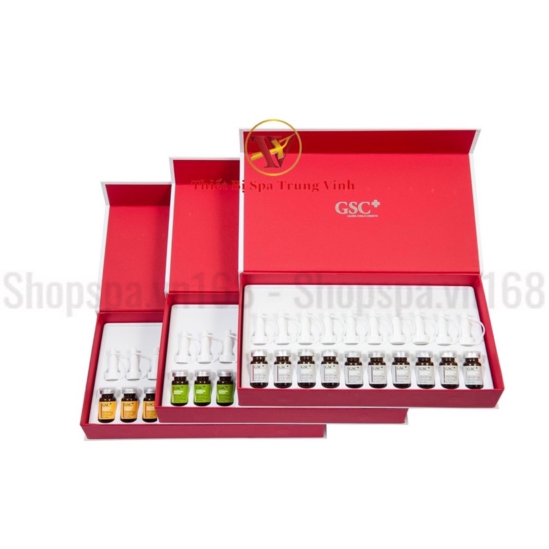 TẾ BÀO GỐC MỤN GA AC CARE AMPOULE GSC GA AC CARE AMPOULE Lọ 8ml Tác dụng: ngăn ngừa mụn tận gốc theo cơ chế thải độc và đẩy nhân mụn ra ngoài, diệt các vi khuẩn P. Acnes gây ra mụn, xóa sạch các ổ mụn bên trong da và ngăn chặn không cho mụn hình thành trở lại. giảm sưng tấy. Nuôi dưỡng từng tế bào da khỏe mạnh, giúp phục hồi vùng da mụn bị tổn thương, đồng thời tái tạo làn da mới chắc khỏe hơn. Ngoài ra, còn có công dụng xóa sạch các vết thâm và làm liền sẹo rỗ do mụn gây ra Thành phần chính: Chiết xuất vỏ cây liễu, chiết xuất tế bào gốc cây trà xanh, chiết xuất tế bào gốc cam thảo, chiết xuất quả chanh, chiết xuất hoa bất tử, chiết xuất hạt mù u, chiết xuất hạt thầu dầu, chiết xuất từ quả bưởi, chiết xuất tế bào gốc cây sen trắng, chiết xuất tế bào gốc rễ mẫu đơn, chiết xuất tế bào gốc cây hoàng cầm, tế bào gốc rong biển, tế bào gốc cây ngải cứu, Disodium EDTA, Retinyl Palmitate, Butyl Avocadate.