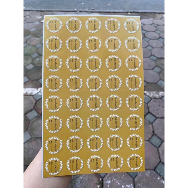 Tem dán nhân bánh Trung thu Có nhiều loại nhân: Nhân Khoai Môn, Nhân Hạt Sen, Nhân Đậu Xanh, Nhân Thập Cẩm... Mỗi tờ có 20-40 tem đã có đường khắc bao quanh, giúp bạn dễ dàng tách tem ra để sử dụng, đồng thời tiết kiệm tối đa chi phí so với mua lẻ Dùng để trang trí, phân biệt các vị nhân bánh trung thu khác nhau Tem dán với nhiều mẫu tem theo các vị nhân bánh. Kích thước tem 2x2cm.