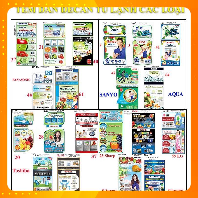 Thiết Bị Điện Gia Dụng > Đồ gia dụng lớn > Tủ lạnh > TEM DECAN DÁN TỦ LẠNH - Các hãng Panasonic Sanyo Aqua Toshiba Samsung Sharp Hitachi LG ( Sử dụng băng dính 2 mặt)