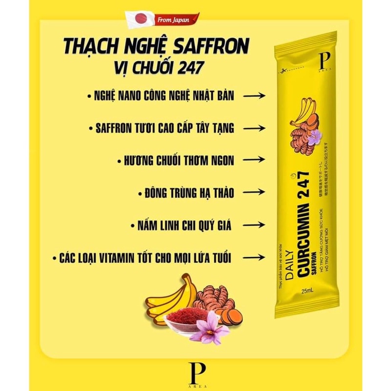 Thạch nghệ Saffron vị chuối 247 từ Nhật Bản, bổ sung tinh chất nghệ Nano Curcumin.