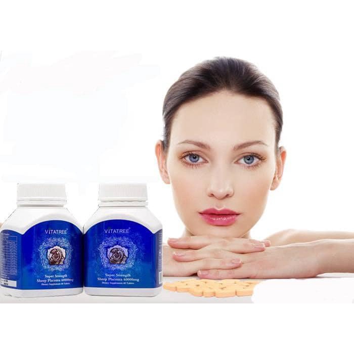 1. Giới thiệu Nhau Thai Cừu Của Úc Vitatree Super Strength Sheep Placenta 60000mg - Phân Loại: Nhau Thai Cừu - Thương hiệu: Vitatree - Xuất xứ: Úc - Đóng gói: 2 hộp nhỏ trong một lốc, mỗi hộp 60 viên - Nhau thai cừu Úc là một nguyên liệu thiên nhiên vô cùng quý giá được biết đến từ hàng ngàn năm nay. Với nhiều dưỡng chất có lợi cho sức khỏe và sắc đẹp, nhau thai cừu được các Nữ Hoàng Ai Cập Cổ xem như bí quyết để giữ mãi vẻ đẹp không tuổi. - Nhau thai cừu Úc Vitatree Super Strength Sheep Placenta 60000mg giúp giảm nám, tàn nhang, các hắc tố trên da. Đồng thời, nuôi dưỡng làn da khỏe mạnh, tái tạo da, làm chậm quá trình lão hóa, ngoài ra còn giúp điều hòa nội tiết cho phụ nữ và tăng cường sức khỏe.