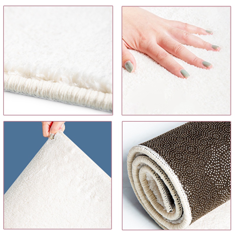 Features 1. Material: The carpet is made of polyester fiber, soft and comfortable, Skin-friendly and environmentally friendly, moisture-absorbing,breathable, and strong water absorption. 2.Non-slip: The non-woven dotted plastic bottom design can effectively grasp the floor, is not easy to wrinkle, protects the floor and is non-slip. 3. Advantages: The mat can effectively absorb water and dust, keeps it dry, comfortable and clean, tasteless and non-irritating.The fluff is firm and not easy to fall off, easy to take care of. 4. Cleaning and Maintenance: The carpet can be cleaned with a vacuum cleaner. Drying the mat in the sun often can effectively disinfect and prolong the life of the mat. 5. Occasions: Living room, bedroom, balcony, study room, dormitory, office, etc. Add a modern style. This is the ideal choice for your family life.