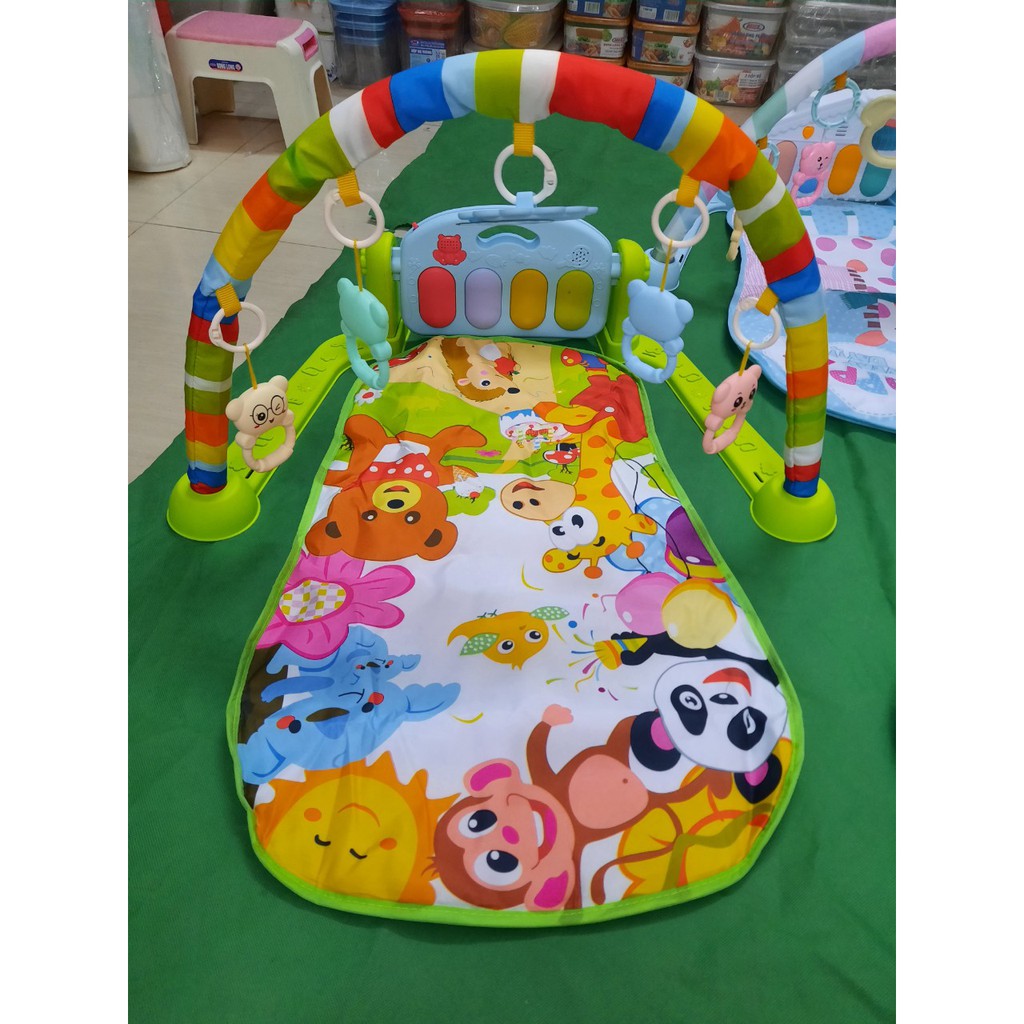 Ở những năm đầu đời, các bé luôn muốn đươc học hỏi mọi lúc mọi nơi, ngay cả khi đang nằm chơi đùa. Hiểu được tâm lý này nên thảm nhạc cho bé ra đời giúp bé phát triển toàn diện. Thảm nhạc cho bé với rất nhiều tiện ích và ưu điểm: * Kích thích phát triển thị giác và trí não nhờ các đồ vật treo ngộ nghĩnh cùng các sắc màu tươi vui * Tăng cường sự vận động cơ thể của trẻ, đặc biệt là tay và chân khi nằm chơi * Ba mẹ sẽ rảnh rang hơn vì bé tập trung chơi đùa với thảm nhạc mà không quấy khóc Đặc điểm của loại thảm nhạc cho bé kết hợp chơi và vận động: 1. Thảm chơi nhạc cho bé chạy bằng 3 pin tiểu 2. Sản phẩm được làm từ loại vật liệu cao cấp, an toàn với sức khỏe của bé, thân thiện môi trường 3. Đệm nằm êm ái, có nhiều hình thù móc treo ngộ nghĩnh 4. Màu sắc bắt mắt kích thích thị giác và trí tò mò của trẻ. 5. Các phím đàn chạm vào sẽ phát nhạc, tăng cường khả năng nghe của bé 6. Bé có thể chơi đàn piano khi nhỏ bằng chân, và bằng tay khi bé đã ngồi vững Với sản phẩm thảm chơi nhạc cho bé này sẽ giúp bé phát triển cả thể lực và trí tuệ. Cũng như giải phóng cho các mẹ bớt thời gian phải chơi và trông bé. Bé hoàn toàn vừa nằm chơi bên cạnh để mẹ có thể làm thêm các việc nhà khác. Sản phẩm thảm nhạc cho bé nằm chơi phù hợp cho bé trong một thời gian dài phát triển. Từ lúc bé còn nằm ngửa đến khi bé có thể ngồi, bò và đi.