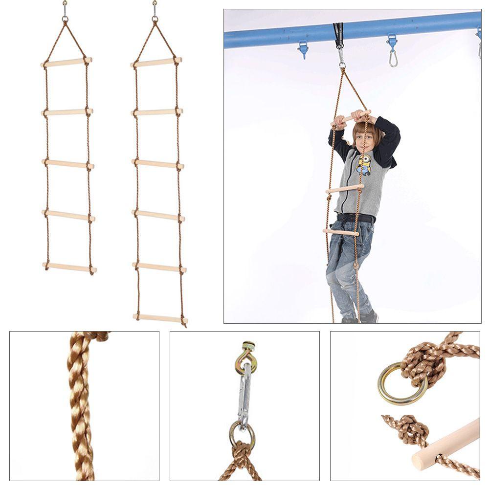 1 móc XSafety Dây xích đu Xoay Xoay Dây gỗ Thang Đồ chơi thể dục cho trẻ em Nhiều Rungs Trò chơi Leo núi Đồ chơi Hoạt động đào tạo ngoài trời 5 '6 Rungs Thể thao an toàn Chất lượng cao