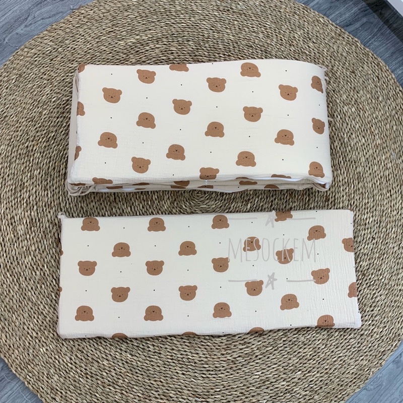Giới thiệu (THÁO VỎ) Bộ quây cũi và ga cũi bo chun bọc nệm vải muslin cho bé