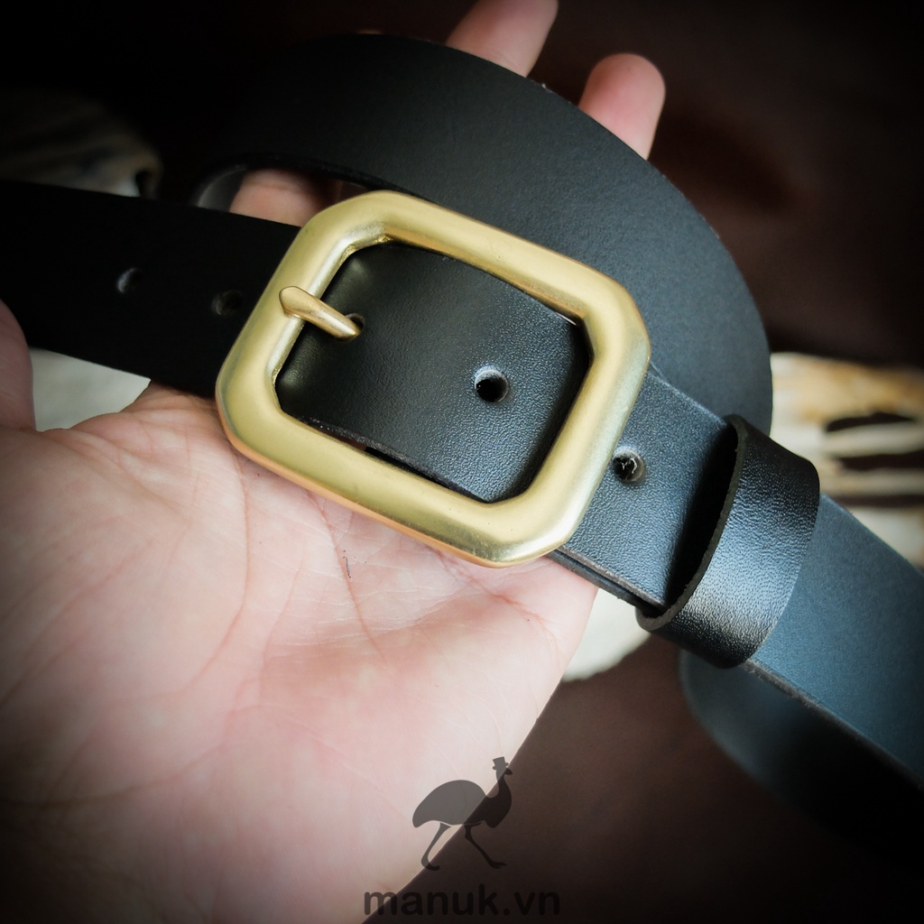 Giới thiệu Thắt lưng nam bảng 3.4cm Manuk Da bò nguyên miếng tặng đinh đục | Khoá đồng nguyên chất Bm8