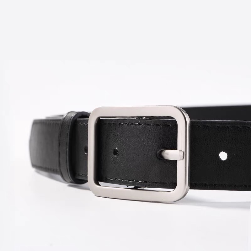 Giới thiệu Thắt lưng unisex mặt chữ nhật BROO màu đen phong cách basic, dây nịt da pu bản 2.8cm đơn giản cho nam nữ