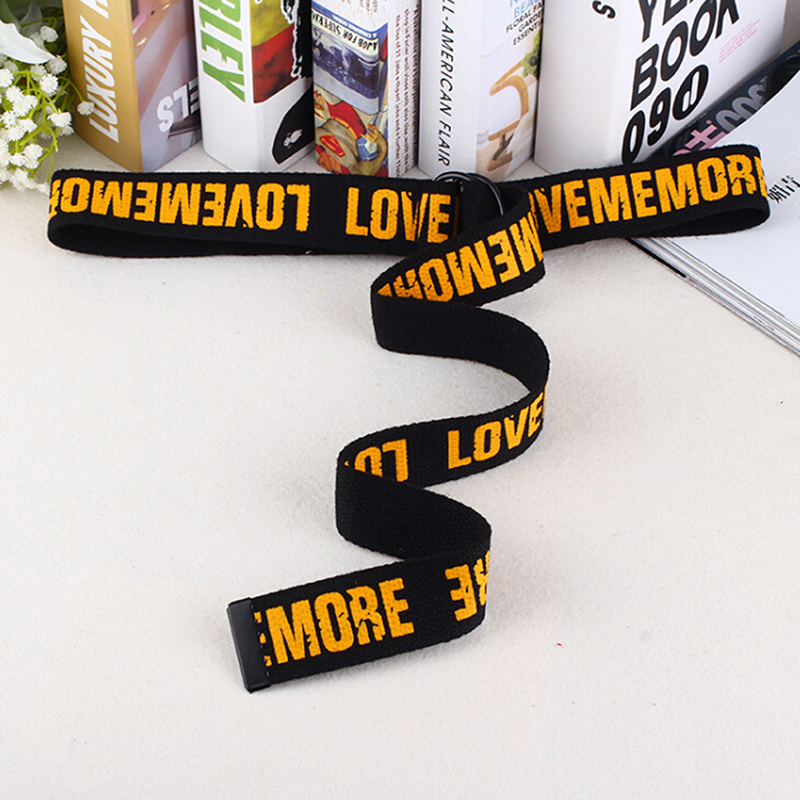 Welcome to panghu.vn shop! [pang] Harajuku Belt Fashion Letter Print Unisex Double D Ring Canvas Strap Long Belt [ph] Description: