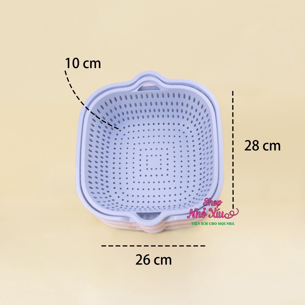 Bộ Thau Rổ Vuông VIỆT NHẬT - Bộ Thau rổ 6 món Ráo Nước 2 Lớp Cao Cấp Tiện Lợi Nhựa PP Siêu Cứng