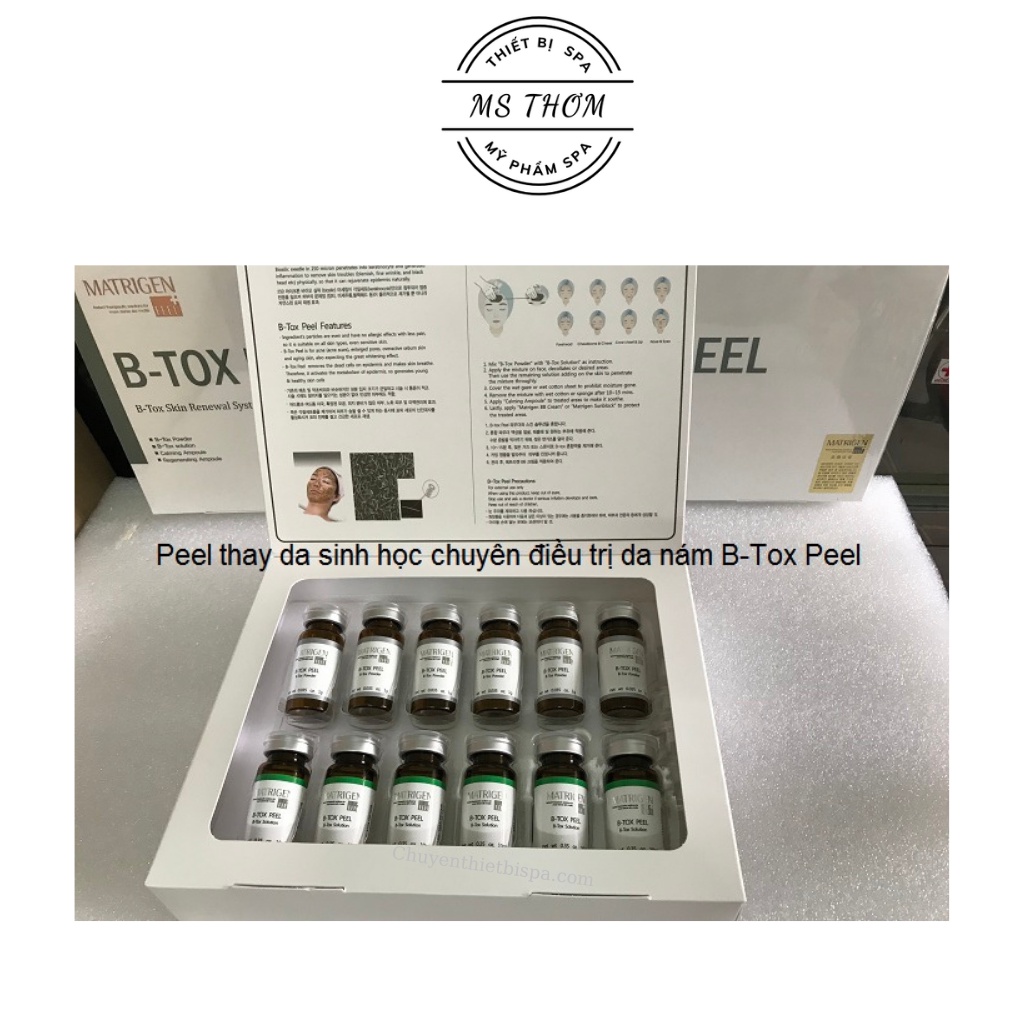 🆘🆘 Btox hàng về sau bao ngày hết hàng🆘🆘 Thay da sinh học B-TOX PEEL Skin Renewal System 💯💯💯💯 ĐẸP SAU 1 TUẦN 💯💯💯💯 ????? 🖤Công Nghệ Trẻ Hoá Da sau 7-10 ngày Hàn Quốc - Vi Kim Bằng Tảo Sống Silic #btoxpeel #matrigen ❌❌❌ DA MỤN, DA SẦN, SẸO THÂM RỖ❗️ NÁM VÀ TÀN NHANG❗️❗️ 👉🏻 chỉ 1 lần peel là thấy RÕ RỆT HIỆU QUẢ. B - TOX PEEL MAXTRIGEN - Xuất xứ : Hàn Quốc🇰🇷🇰🇷 ❌❌❌LƯU Ý: BTOX LÀ VI KIM TẢO SỐNG CHỨ K PHẢI LỘT DA SINH HỌC NÊN TUYỆT ĐỐI KHÔNG LÀM MỎNG DA MÀ TRÁI LẠI SẼ LÀM TĂNG ĐỘ SĂN CHẮC, đàn hồi và làm khoẻ da. 🔜 B-Tox một công nghệ Peel da được các Thẩm mỹ viện tại Hàn Quốc sử dụng rộng rãi để làm đẹp cho các ngôi sao nổi tiếng. 🔜 B-Tox là phương pháp peel da căng bóng sáng mịn là cách sao Hàn Quốc dùng nhiều nhất hiện nay, bên cạnh sản phẩm B-tox Peel còn được đông đảo khách hàng ưa chuộng, đánh giá cao bởi công dụng chất lượng của nó mang lại. 🦋🦋Nhiều người ko hiểu nghĩ rằng B-Tox peel như lột da kiểu ở vn là SAI LẦM !!! Nó là tảo sống silic vi kim len lỏi vào tế bào da đẩy hết da chết, da xấu, độc tố...mụn sẹo rỗ vết thâm nhất là nám tàn nhang ra hết bề mặt và tái tạo làn da khoẻ mạnh sau 7-1" ngày. 🍀 #Da_bình_thường ko bị gì hết vẫn peel đc để trẻ hoá, giảm nếp nhăn, nâng cơ mặt...Tóm lại là peel sau 7-10 ngày sẽ thấy da đẹp lắm luôn và 1 lần đầu đã thấy hiệu quả rõ rệt. Giờ e đã hiểu tại sao gái Hàn da đẹp quá . công nghệ này đang đc showbiz việt ưa chuộng lắm ạ 😘😘 ☘️Đối với #da_xấu cần trị liệu trước khi chuyển qua dưỡng thì e khuyên là nên làm 1 liệu trình Btox Peel. 1 set này chia ra có thể peel đc maximum 4 lần. Mà sau mỗi lần Peel là da CẢI THIỆN ĐÁNG KỂ LẮM RỒI Ạh. Khách e mới peel đc vài ngày da căng bóng đáng kể, mờ nám, thâm, và sẹo mụn THÀNH PHẦN: - Tảo Silic, Chiết xuất Qijing, Chiết xuất SEG - Chiết xuất Cây Phỉ - Rễ Marshmallow, Tảo Xoắn - Chiết xuất Cúc Calendula, Chanh, hạt Cỏ Cà Ri 1 hộp GỒM: - 6 chai B-TOX Powder, 6 chai B-TOX Solution: dùng trộn thành hỗn hợp peel.