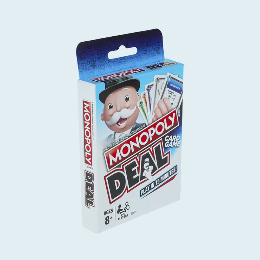 Trò chơi thương lượng Monopoly Trò chơi thẻ bài Monopoly là tất cả những điều thú vị của trò chơi Monopoly trong một trò chơi đánh bài nhanh. Sản phẩm đi kèm với 110 thẻ bao gồm Thẻ tài sản, Thẻ cho thuê, Thẻ nhà và khách sạn và Thẻ tài sản hoang dã. Thẻ hành động cho phép người chơi làm những việc như tính tiền thuê và thực hiện các giao dịch khó khăn. Thẻ Nhà và Thẻ Khách sạn nâng cao tiền thuê. Thẻ Tài sản Hoang dã giúp người chơi xây dựng các bộ Tài sản. Và người chơi thanh toán các khoản nợ của họ bằng Thẻ tiền. Hãy là người chơi đầu tiên thu thập đầy đủ 3 bộ Thẻ thuộc tính với nhiều màu sắc khác nhau để giành chiến thắng. Trò chơi bài này là một cách tuyệt vời để chơi trò chơi giao dịch tài sản nhanh chóng trong vòng 15 phút!
