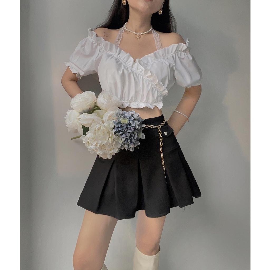 Áo croptop lụa dây ren CINDERELLA giá 350k - Chất vải: lụa Hàn chống nhăn mướt dày dặn - Áo phía sau dạng bèo chéo ĐỘC LẠ KHÔNG ĐỤNG HÀNG (Khách có thể xem hình ảnh) - Áo mang 4 kiểu: Trễ vai có dây ren/ Cố V có dây ren/ Trễ vai không dây ren (Tháo dây ren giấu vào sau áo)/ Cổ V không dây ren (Tháo dây ren giấu vào sau áo)