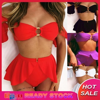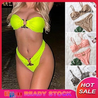 Bộ Đồ Bơi Hai Mảnh Màu Sắc Trơn Lưng Cao Phối Khóa Kim Loại Dành Cho Nữ