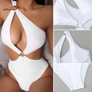 Đồ bơi 1 mảnh lệch vai màu trơn quyến rũ cho nữ