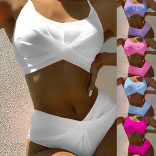 Bộ Đồ Bơi 2 Mảnh Dây Chéo Lưng Cao Gợi Cảm Cho Nữ