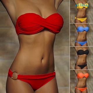 Bộ Đồ Bơi 2 Mảnh Không Dây Nâng Ngực Màu Sắc Đơn Giản Thời Trang Mùa Hè Cho Nữ