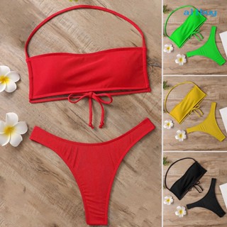 Bộ Đồ Bơi 2 Mảnh Màu Trơn Thiết Kế Khoét Vai Có Dây Điều Chỉnh Được Màu Sắc Thời Trang Cho Nữ