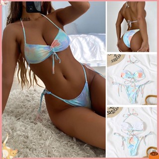 Bộ 3 Món Đồ Bơi Bikini Gồm Áo Hai Dây Và Chân Váy Lưới In Họa Tiết Màu Nhuộm Có Thể Điều Chỉnh Cho Nữ