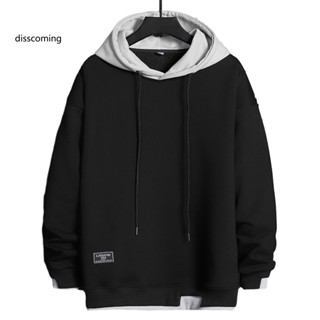 Áo Thun In Hình SL SL SL SL SL Thời Trang Cá Tính| Áo Hoodie Giả Hai Lớp Dáng Rộng Phối Dây Rút Màu Sắc Tương Phản Phong Cách Thể Thao Thời Trang Cho Nam Giới