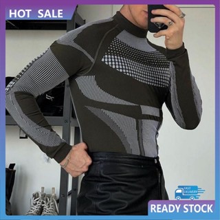 Áo Thun Tay Dài Cổ Cao Họa Tiết Kẻ Sọc Màu Sắc Tương Phản Thời Trang Mùa Đông Cho Nam