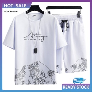 Set Đồ Thể Thao 2 Món Gồm Áo Thun Tay Ngắn Cổ Tròn + Quần Short Dáng Rộng Phối Dây Rút Co Giãn In Họa Tiết Núi
