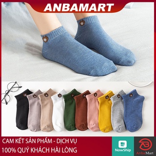 Tất Gấu set 10 Đôi - Vớ Tất nữ cổ ngắn cute đủ màu tặng kèm Túi Dây Rút Gấu Brown