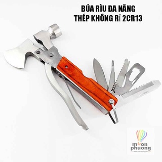 Búa rìu đa năng gọn nhẹ bằng thép 2CR13 không rỉ tay cầm gỗ thiết kế 2 đầu rìu và búa kết hợp thêm nhiều tính năng