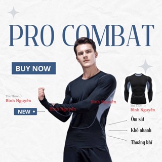 Áo Pro Combat Dài Tay Viền Đen Viền Trắng Áo body bó cơ đá bóng, bóng rổ, gym, chạy bộ thể thao tập gym co giãn tốt