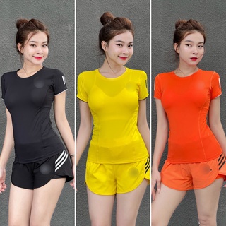 Bộ Thể Thao Nữ Quần Đùi 2 Lớp + Áo Thun Tay Ngắn 3 Sọc Tập Gym - BD2301