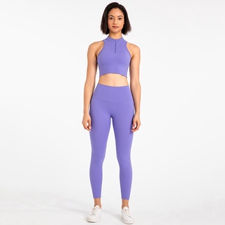 Set trang phục thể thao HOPPE FUMENG áo ngực sát nách khóa kéo trước và quần legging lưng cao thời trang dành cho nữ
