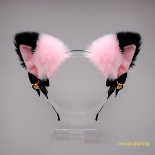 Băng đô thiết kế hình tai mèo đính lông giả phối nơ màu hồng xinh xắn