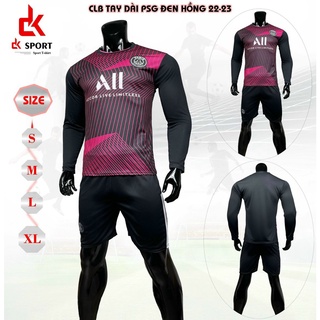 Bộ quần áo bóng đá tay dài Pari đen sọc hồng mùa 2022 mới đẹp thun lạnh