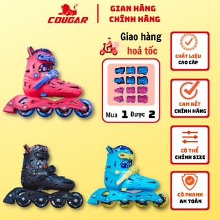 Giày Patin Trẻ Em Cougar 333 Cao Cấp Có Bánh Đèn Phát Sáng Toàn Bộ, Có Thể Điều Chỉnh Size, Tặng kèm bảo hộ tay chân