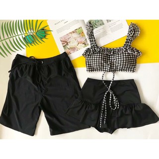 Bikini Caro Viền Bèo Váy Tầng Dễ Thương, Set Đồ Bơi Đi Biển Couple [Ảnh Chụp Thật] - OS035