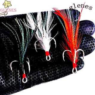 Set 4 Móc Treo Đồ 4 Đầu Lông Vũ Chất Lượng Cao# 6# 8# Mồi Câu Cá Ba Móc Phát Sáng Có Độ Bền Cao