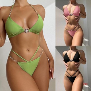 Iwo Bộ Đồ Bơi Bikini Hai Mảnh Cổ Cao Cắt Xẻ Gợi Cảm Có Dây Buộc Cổ Dành Cho Bạn Nữ Đi Tắm Biển