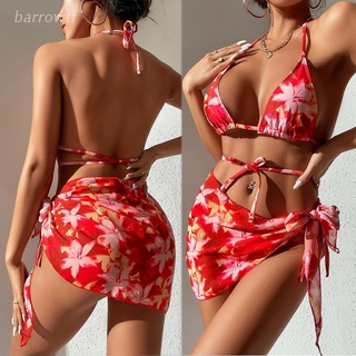 Brroa Bộ Bikini 3 Mảnh Hở Lưng Có Vòng Nối Hình Trái Tim Gợi Cảm Có Vỏ Bọc Sarongs Cho Nữ Su