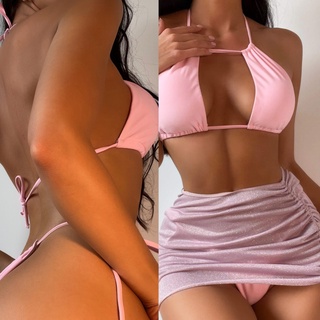 Brroa Bộ Đồ Bơi Bikini Ba Mảnh Cổ Yếm Cắt Cao Nâng Ngực Gợi Cảm Cho Nữ
