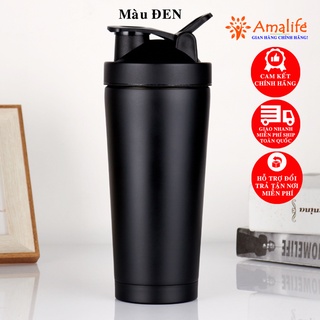 [Màu ĐEN] Bình Lắc Shaker Đựng Nước Inox 800ml – Màu Đen – Tập Gym Thể Thao Chính Hãng Amalife – Kèm Bóng Lò Xo Lắc
