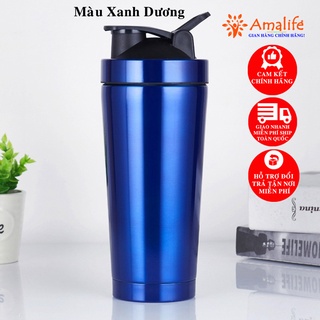 [Màu Xanh Dương] Bình Lắc Đựng Nước Shaker Inox 800ml – Tập Gym Thể Thao Chính Hãng Amalife – Kèm Bóng Lò Xo Lắc