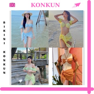 Đồ bơi nữ sét 3 món bikini trể vai tay phồng chất xốp KONKUN MS113