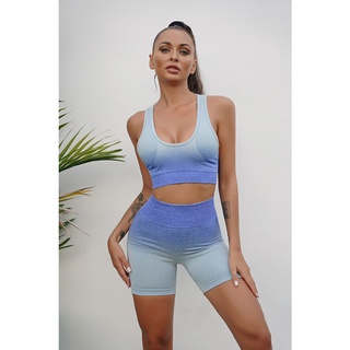 Bộ Tập Gym Yoga Nữ Quần Đùi Chun Mông Màu Omber 8052 Chất Dệt Kim - Hàng Cao Cấp