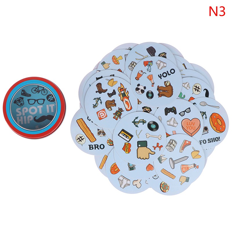 Đặc điểm: #01 Động vật (31 chiếc) Tên trò chơi: phát hiện nó động vật Người chơi: 4 trở lên Số người chơi: 26 Thời gian trò chơi: dưới 30 điểm trừ Kích thước hộp: 9 * 9 * 3 cm / 3.5 * 3.5 * 1.18in Thẻ tròn, đường kính là 83mm (đo bằng tay, có thể có một chút sai số) Số lượng: 31 chiếc (Không bao gồm hộp sắt) #02 Hip hop (55 chiếc) Tên trò chơi: phát hiện nó động vật Người chơi: 13+ Số người chơi: 2-8 Thời gian trò chơi: dưới 30 điểm trừ Kích thước hộp: 9 * 9 * 3 cm Thẻ tròn, đường kính là 83mm (đo bằng tay, có thể có một chút sai số) Số lượng: 55 chiếc (Không bao gồm hộp sắt) #03 Cắm trại (55 chiếc) Tên trò chơi: phát hiện nó động vật Người chơi: 7 tuổi đến người lớn Số người chơi: 2-8 Thời gian trò chơi: dưới 30 điểm trừ Kích thước hộp: 9 * 9 * 3 cm Thẻ tròn, đường kính là 83mm (đo bằng tay, có thể có một chút sai số) Số lượng: 55 chiếc (Không bao gồm hộp sắt) #04 Thể thao (55 chiếc) Tên trò chơi: phát hiện nó động vật Người chơi: 6 đến người lớn Số người chơi: 2-8 Thời gian trò chơi: dưới 30 điểm trừ Kích thước hộp: 9 * 9 * 3 cm Thẻ tròn, đường kính là 83mm (đo bằng tay, có thể có một chút sai số) Số lượng: 55 chiếc (Không bao gồm hộp sắt) #5 Động vật / Số (30 chiếc) Tên trò chơi: phát hiện nó động vật Người chơi: trẻ em Số người chơi: 1-5 Thời gian trò chơi: dưới 30 điểm trừ Thẻ tròn, đường kính là 78mm (đo bằng tay, có thể có một chút sai số) Tổng số là 30 thẻ mỗi (Không bao gồm hộp sắt) #6 Cổ điển (55 cái) Loại: Trò chơi thẻ bên gia đình Spot It Màu sắc: nhiều màu Chất liệu: giấy tráng Tuổi: 7—15 tuổi Kích thước: Xấp xỉ 8,3 * 8,3 * 1,7 CM