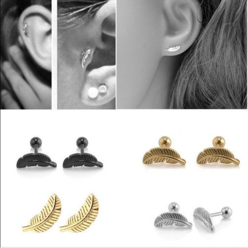 Phụ Kiện & Trang Sức Nữ > Bông tai > Thép không gỉ Feather Barbell Ear sụn Helix vành Stud Earring Piercing