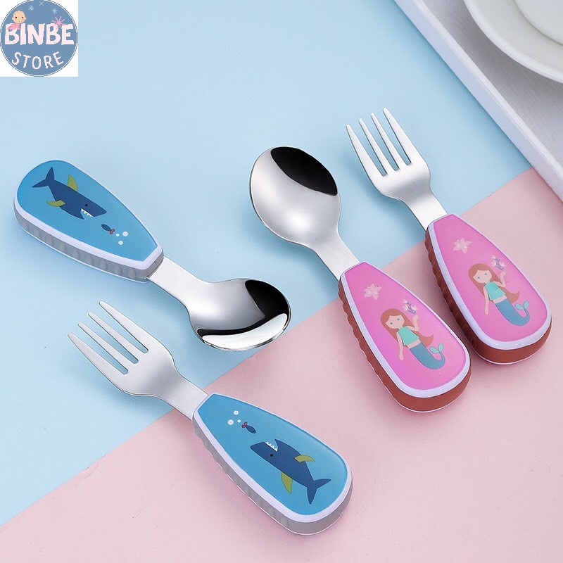 Giới thiệu Thìa ăn dặm, set thìa dĩa ăn dặm inox 304 cao cấp cho bé trai bé gái Binbestore
