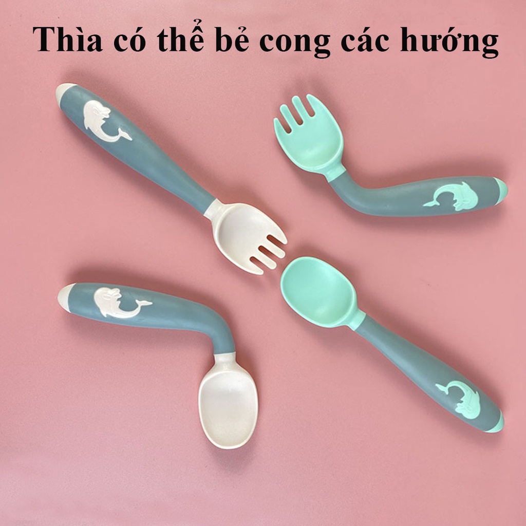 Giới thiệu Thìa dĩa cho bé tập ăn - Bộ thìa nĩa tay cầm uốn cong cho bé tập xúc ăn dặm