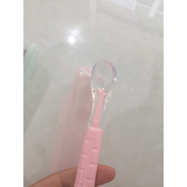 thìa nạo trái cây là thìa có 1 đầu inox không gỉ viền răng cưa, giúo nạo nhuyễn trái cây cho bé tập ăn, một đầu thìa bằng silicon mềm không làm đau bé khi ăn
