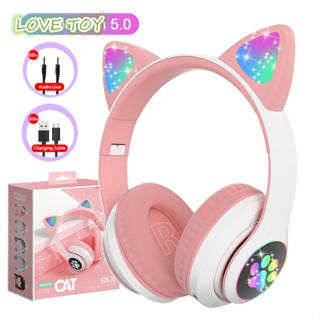 Tai Nghe Chụp Tai Nkodok Bluetooth Không Dây Có Micro Và Đèn Led Rgb Hình Tai Mèo Dễ Thương